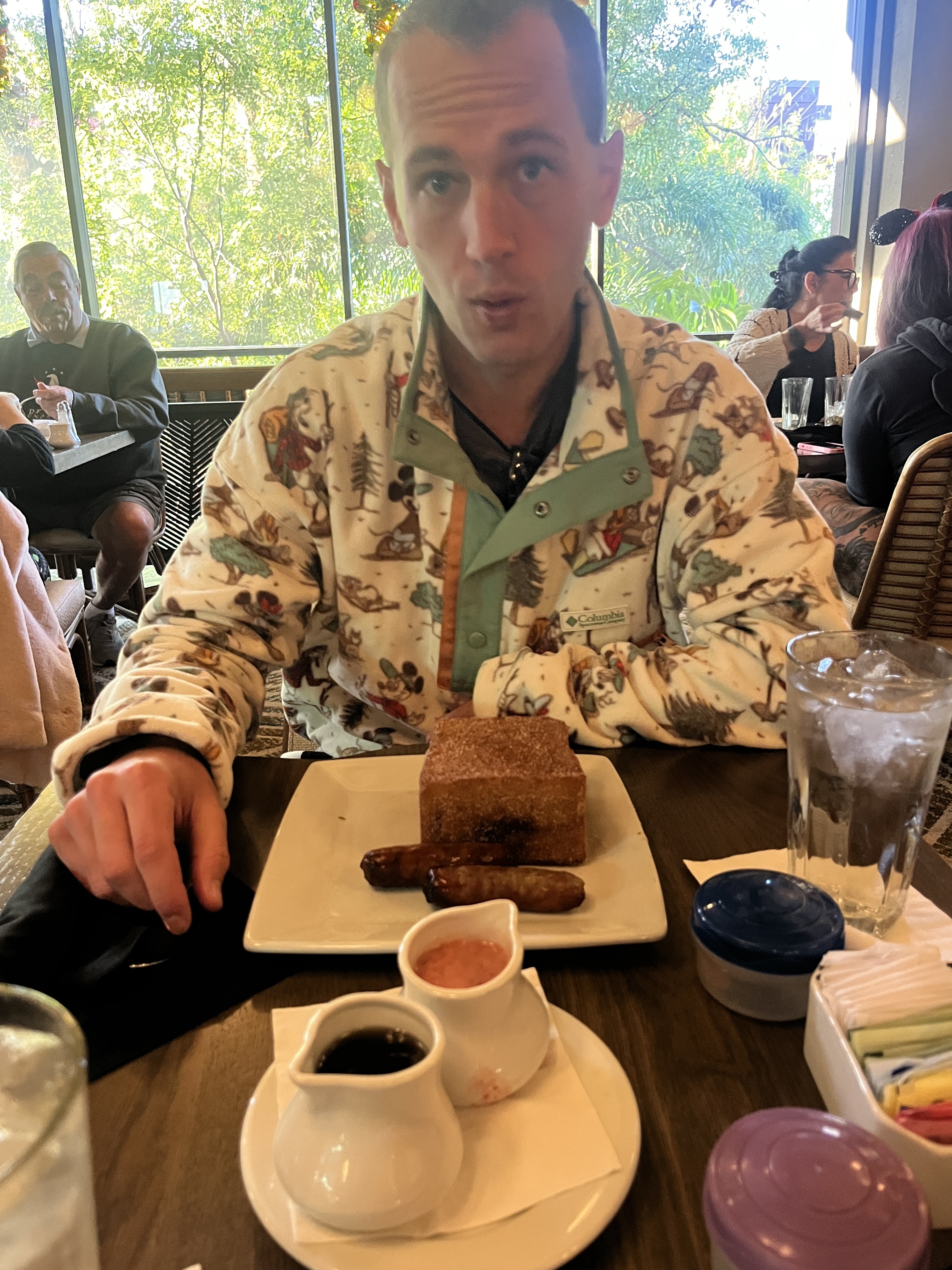 Kona Cafe at the Polynesian Resort, but their kitchen was down and they were serving a limited menu. We tried tonga toast for the first time with the strawberry sauce which was yum.